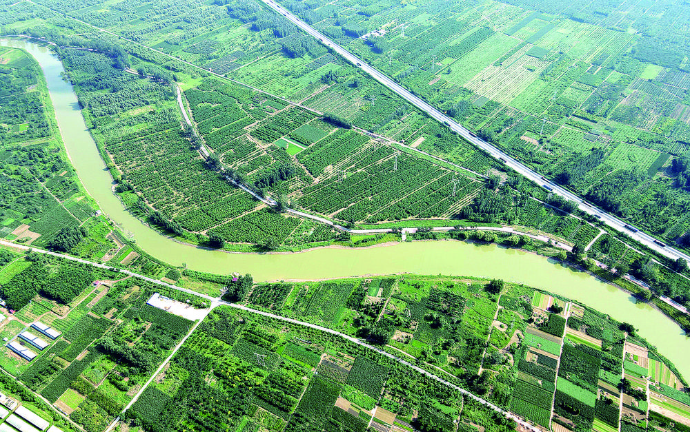 8月23日,无人机拍摄的大运河沧州段和并行的堤顶路。当日,由中铁二十二局集团四公司负责施工的京杭大运河沧州段生态修复改造提升工程贯通,标志着这项工程取得重要进展。