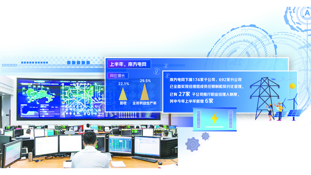 通过开展系统性改革,今年上半年,南方电网营收同比增长22.1%,两年平均增长9.3%,全员劳动生产率同比增长29.5%,以改革促发展取得实效,实现“十四五”良好开局。