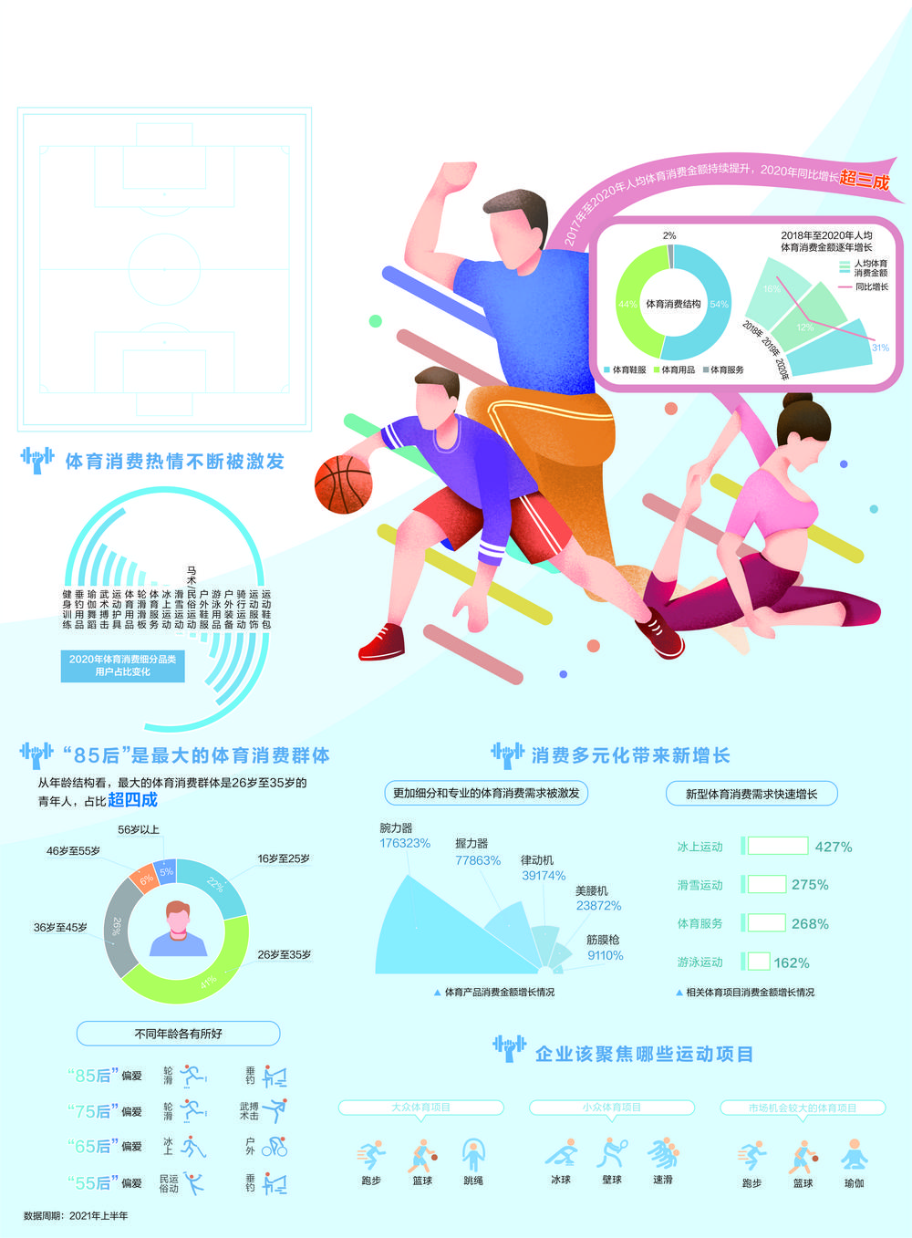 最新体育消费数据显示,相对于拥有群众基础的大众运动而言,一些小众运动虽然消费人群不大,但人均消费高,加之线下场馆、培训等服务,对体育消费拉动作用更加明显。