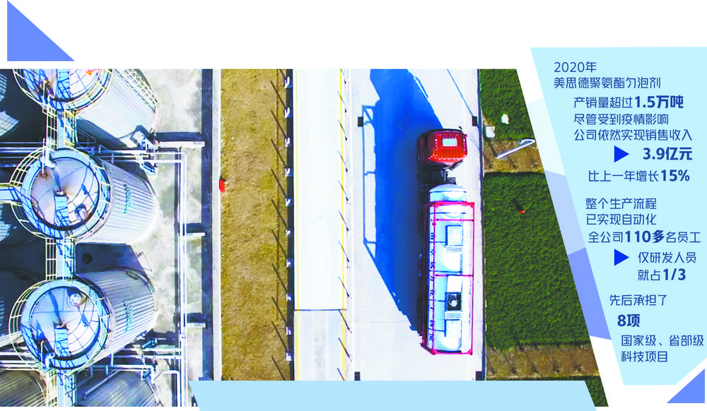 祁争健说,“十三五”期间,美思德提出的“新一代聚氨酯匀泡剂的研发及产业化”项目被中国聚氨酯行业协会列为重点科技攻关课题,并被列为江苏省科技成果转化项目,目前该项目已完成建设并成功投产,为公司可持续发展提供了有力支撑。