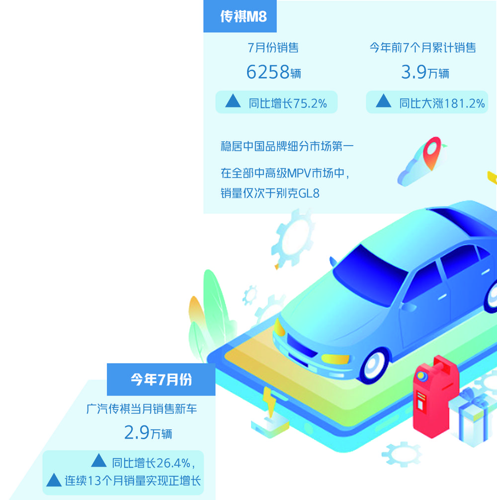 而为争取MPV细分市场更多话语权,公司推出中高端产品传祺M8。7月份,传祺M8销售6258辆,同比增长75.2%。今年前7月,累计销售3.9万辆,同比涨181.2%,不仅稳居中国品牌细分市场第一,而且在全部中高级MPV市场中,销量仅次于别克GL8。要看到,传祺M8主力车型售价22万元以上,最高售价甚至达到36.98万元。也正是有了这样一款高端MPV,传祺平均单车售价才实现向上跃升。