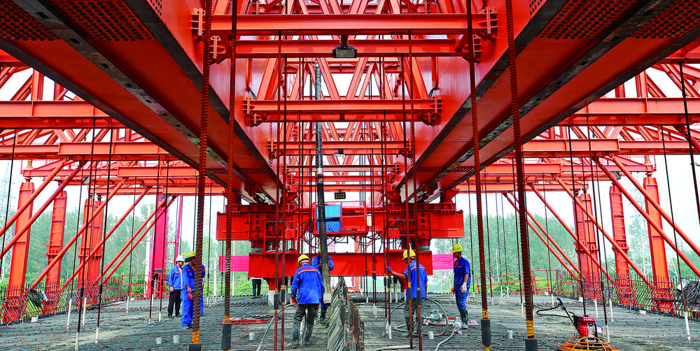 八月二十九日,常泰长江大桥江苏常州段公路引桥首个连续箱梁开始浇筑,标志着全线上部结构施工开始。陈 暐摄(中经视觉)