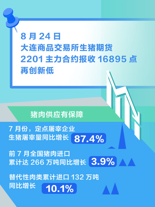 继8月23日跌破前期低点17265点之后,8月24日大连商品交易所生猪期货2201主力合约报收16895点,再创新低。