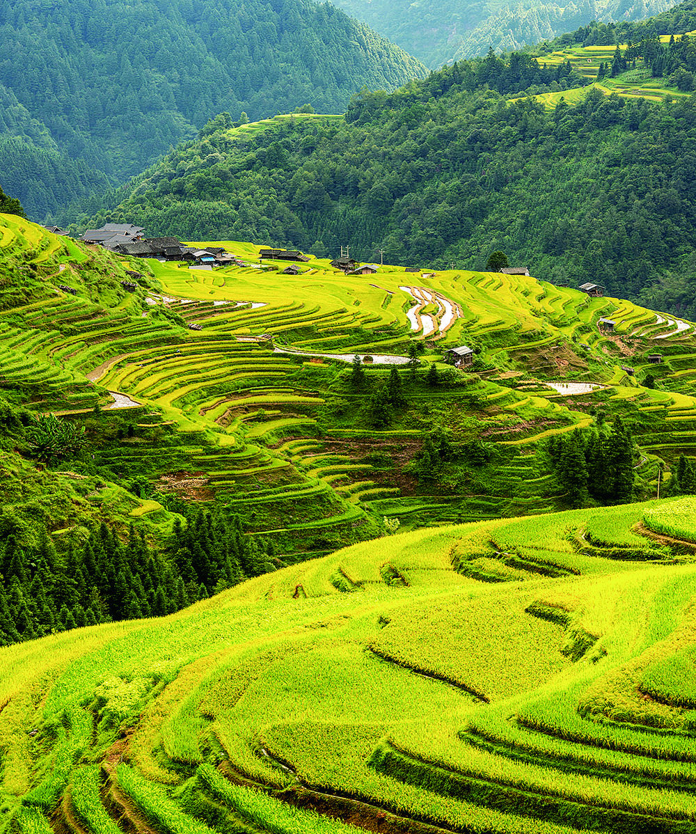 8月30日,贵州省黔东南苗族侗族自治州从江县的梯田金黄灿烂,层层叠叠的稻田与青山交相辉映,构成一幅秋日田园画卷,美不胜收。卢忠南摄(中经视觉)
