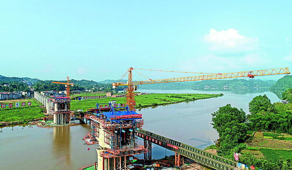 9月2日,汉巴南铁路(蓬安段)西河特大桥加紧施工。汉巴南铁路起于陕西汉中南郑区,经四川巴中市至南充市,全长约290公里,设计时速250公里,该线路建成后将成为川陕革命老区经济发展的重要交通基础设施,对推动老区振兴发展、提高沿线居民生活水平等具有重要意义。周 亮摄(中经视觉)