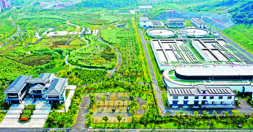 9月3日,浙江省仙居县污水处理厂及配套建设的生态湿地公园绿树成荫。