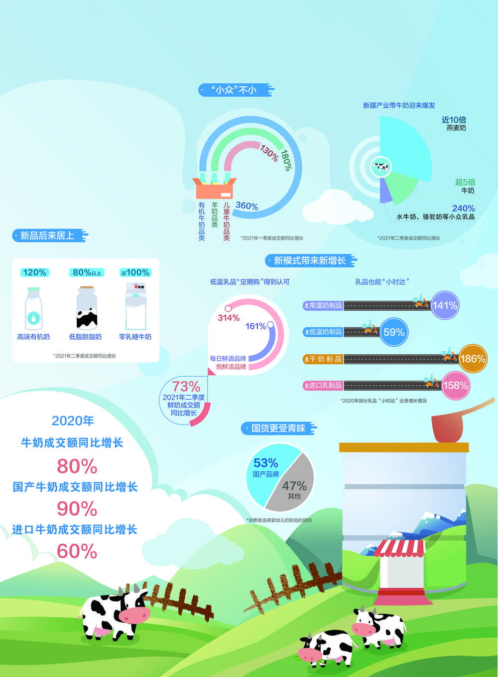 “种草”国潮已成为一种时尚,在乳品市场更是如此。数据显示,2020年国产牛奶成交额同比增长90%,远高于进口牛奶成交额增速。关注度、增长点都有了,“凭什么打动‘中国胃’”便成为摆在各大乳品企业面前的必答题。