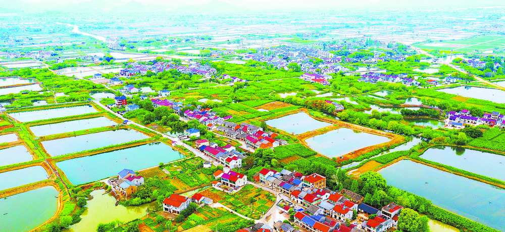 9月4日,阳光下的浙江省湖州市菱湖镇射中村桑基鱼塘与特色民居错落有致,生机盎然。近年来,当地以“帮带扶”的产业服务方式,着力培育集休闲观光、桑蚕生产、鱼类养殖于一体的生产经营体系,助力乡村振兴。徐佳妍摄(中经视觉)