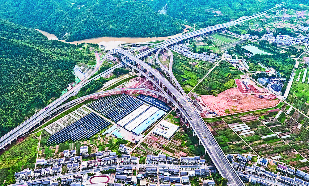 9月3日,车辆行驶在湖北省十堰市竹山县溢水镇十巫高速鲍溢段互通立交桥上。当天,十巫高速鲍溢段正式开通运营。十巫高速从湖北十堰经陕西镇坪至重庆巫溪,为十堰市“两小时高速经济圈”补齐了最后一环。章 磊摄(中经视觉)