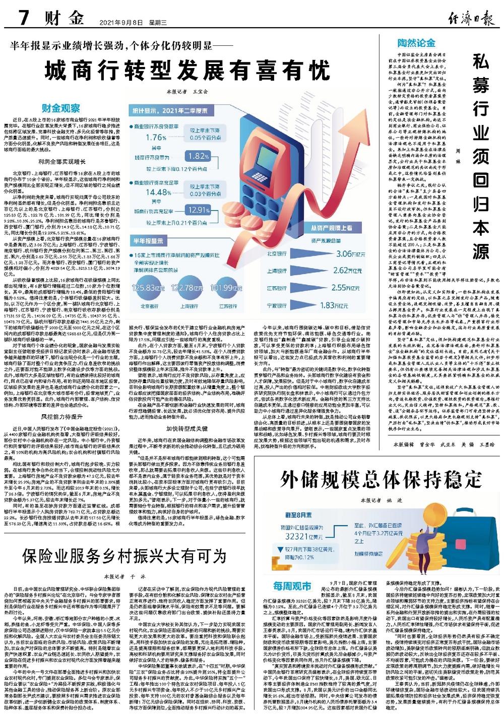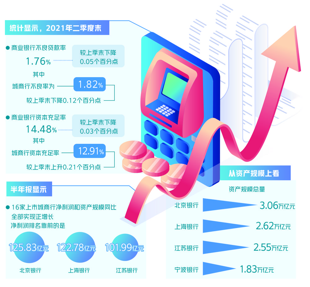 近日,在A股上市的16家城市商业银行2021年半年报披露完毕。在银行业改革发展大背景下,16家城商行稳步推进包括跨区域发展、完善科技金融支持、多元化经营等举措,资产质量迅速提升。同时,一些城商行在净利润和吸收储蓄等方面分化明显,化解不良资产风险和转型发展任务艰巨,这是城商行面临的最大挑战。