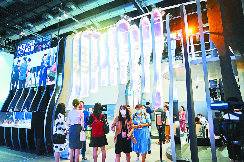 ⑥服贸会香港馆展区颇具特色,通过运用新材料制成的开放性波浪结构,寓意把内地和香港的优势叠加起来,共同打造更新更优的服务贸易应用场景。