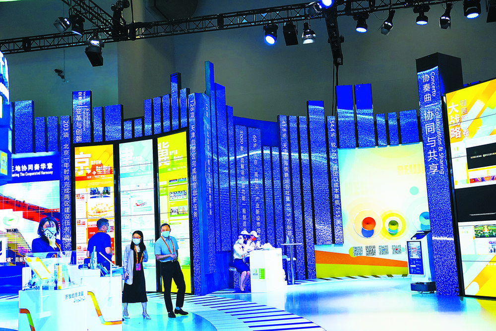 ⑦服贸会京津冀展区以“一体开放谱新曲、三地协同奏华章”为主题,可视化、动态化、立体化展现了7年来京津冀三地协同开放、一体发展取得的成就。