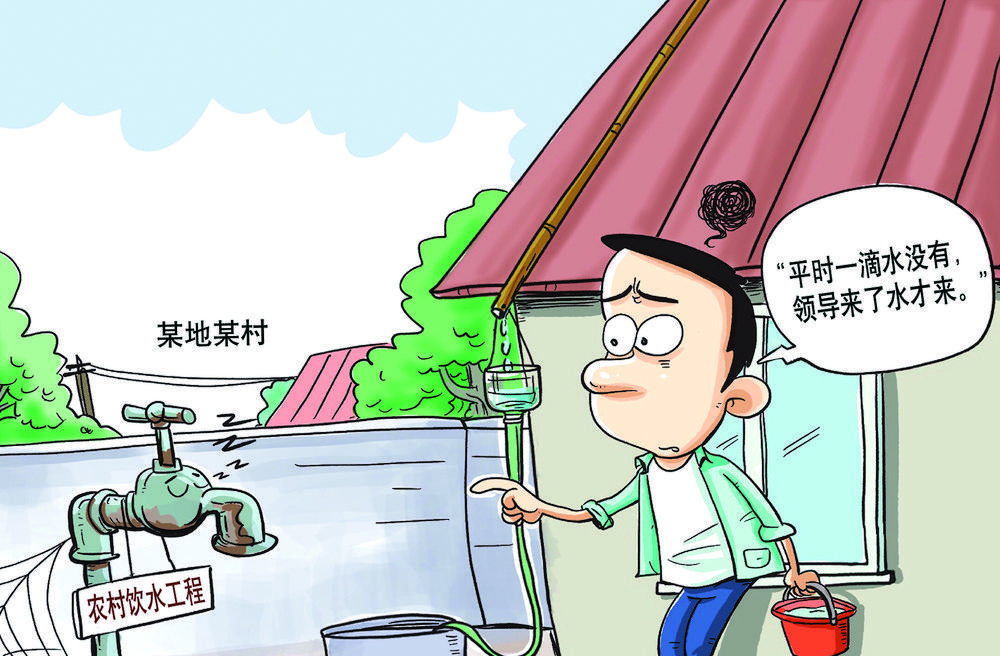 近日,国务院第八次大督查第十五督查组在贵州省毕节市威宁彝族回族苗族自治县秀水镇新光村暗访发现,该村用水设施简陋,水龙头长期闲置成“摆设”,许多村民生活全靠自家屋顶接到的雨水,无任何过滤、净化措施,饮水安全问题亟待解决。对此,督导组要求相关单位严肃认真摸查整改。农村饮水安全问题关乎人民群众身体健康,与巩固拓展脱贫攻坚成果、全面推进乡村振兴息息相关。各地在压实农村饮水安全管理责任的同时,必须严把工程建设质量关、探索后期维护长效机制,还应畅通举报渠道,建立问题办理和回访机制,让村民吃上“明白水”“放心水”。(时 锋)