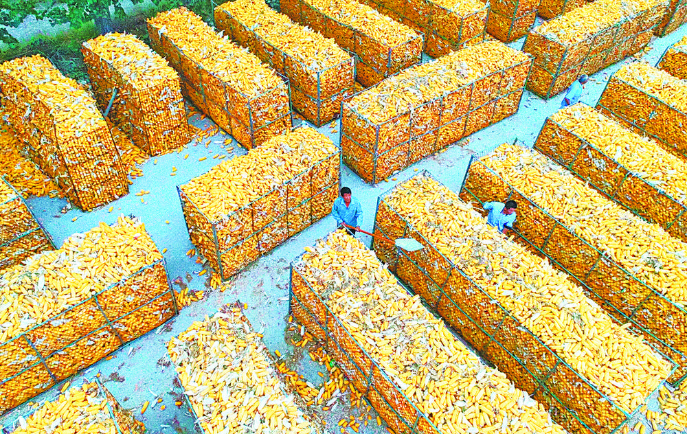 9月9日,山东阳谷县赵台村村民在晾晒丰收的玉米。近年来,当地采取“党支部+合作社+良种+基地+农户”的模式发展特色产业,推进乡村振兴。关淑艳摄(中经视觉)