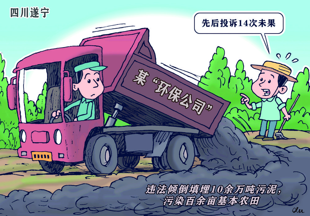 四川省遂宁市船山区一家冠名“环保科技”的公司,7年来假借“土壤改良”名义,倾倒或填埋10.51万吨污泥,污染193.9亩土地,其中基本农田115.4亩。群众先后投诉14次,问题仍未解决。近日,中央第五生态环境保护督察组揭开了这起案例背后隐藏的违法与失职乱象。基本农田数量关乎国家粮食安全,若长期被污染破坏,可能导致部分农田无法使用并将被永久划出基本农田。有关部门应加强监管,积极作为,严查土地违法违规使用行为,切实保护好耕地。(时 锋)