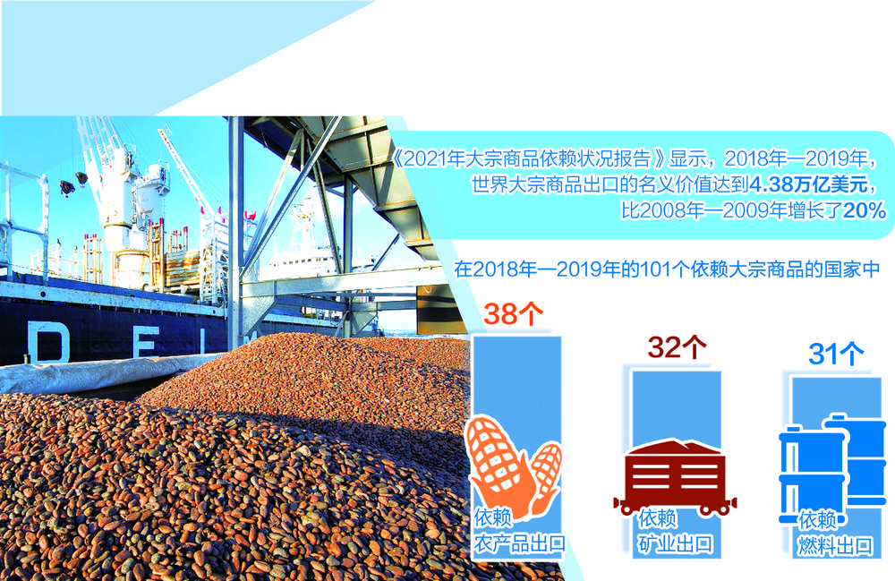 报告显示,2018年—2019年,世界大宗商品出口的名义价值达到4.38万亿美元,比2008年—2009年增长了20%。