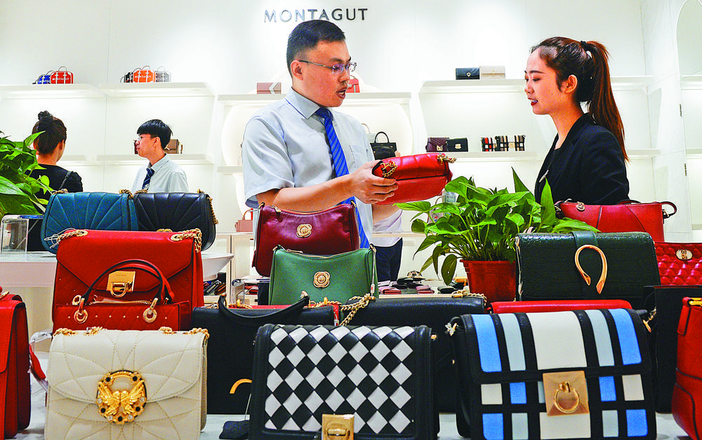 ◀中国银行河北白沟新城支行工作人员,在国际箱包城了解企业经营情况。近年来,白沟新城为企业搭建银企对接平台,建立完善银企合作机制,并积极帮助中小企业拓展融资渠道,为企业破解资金难题。本报记者 陈发明摄