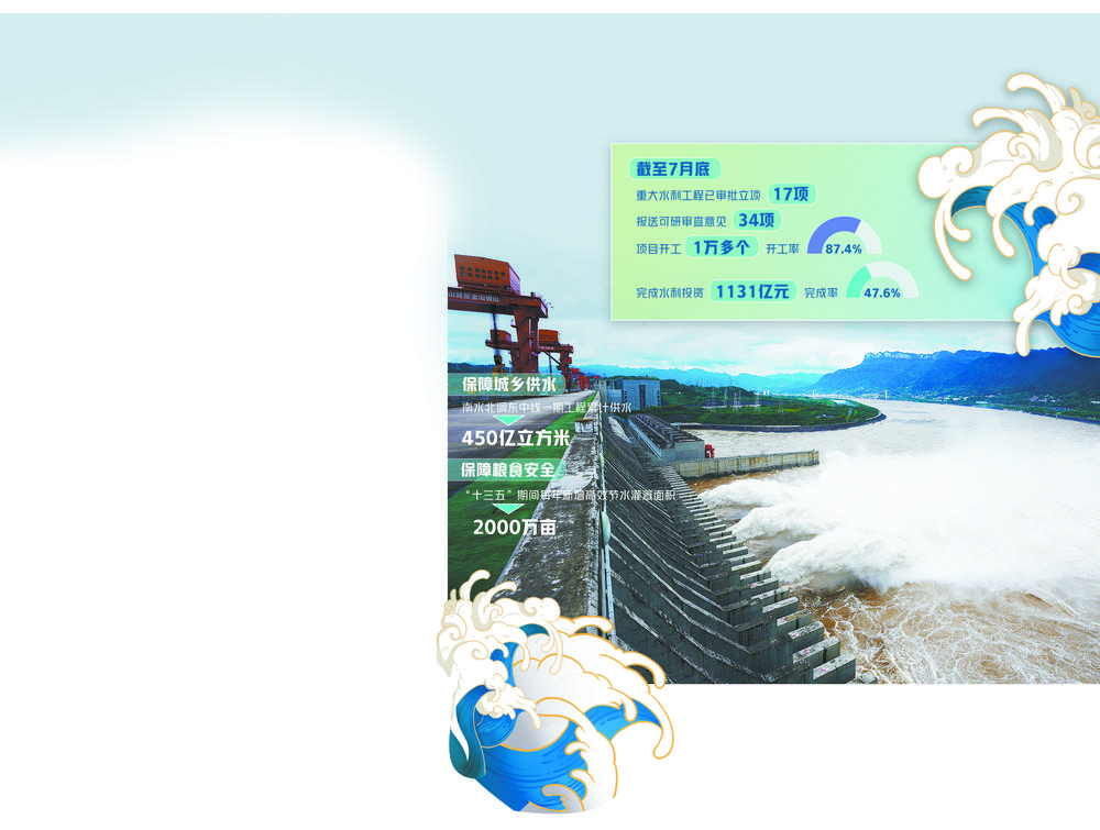 三峡水库发挥的防洪保安能力,是我国重大水利工程建设亮眼成绩单的缩影。“在保障防洪安全方面,随着黄河下游近期防洪治理、江西峡江水利枢纽、河南河口村水库工程通过竣工验收,东北‘三江’治理、天津永定新河治理二期、河北双峰寺水库、广东重点围堤等堤防加固、河道治理和控制性工程基本建成,我国流域整体防洪能力显著提高。”水利部规划计划司副司长李明说。