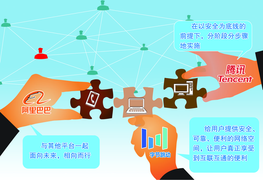 “我国互联网行业发展已面临天花板,各家巨头利用自己的优势设置门槛建立自己的‘护城河’,这不利于互联网创新。打破互联网平台各占山头、互不相通的局面,有利于互联网行业的高质量发展,也将给消费者和用户带来更大价值。”艾瑞咨询CEO张毅对记者说。