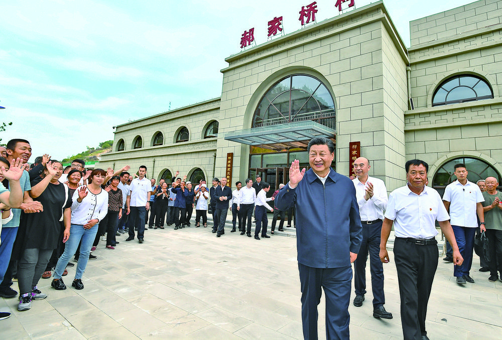 9月13日至14日,中共中央总书记、国家主席、中央军委主席习近平在陕西省榆林市考察。这是14日下午,习近平在绥德县张家砭镇郝家桥村考察时,向乡亲们挥手致意。新华社记者 谢环驰摄