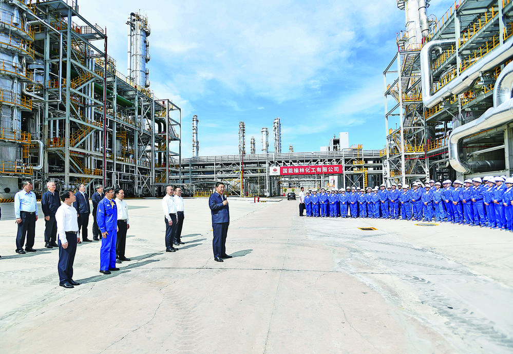 13日上午,习近平首先来到国家能源集团榆林化工有限公司,了解循环经济煤炭综合利用项目规划建设运行情况。在中心控制室,习近平观看项目产品展示,对企业坚持创新发展,坚持安全、稳定、清洁运行的做法表示肯定。随后,习近平到年产40万吨乙二醇项目现场察看,询问煤化工深度发展有关情况,同企业职工代表亲切交流。他强调,榆林是国家重要能源基地,为国家经济社会发展作出了重要贡献。煤炭作为我国主体能源,要按照绿色低碳的发展方向,对标实现碳达峰、碳中和目标任务,立足国情、控制总量、兜住底线,有序减量替代,推进煤炭消费转型升级。煤化工产业潜力巨大、大有前途,要提高煤炭作为化工原料的综合利用效能,促进煤化工产业高端化、多元化、低碳化发展,把加强科技创新作为最紧迫任务,加快关键核心技术攻关,积极发展煤基特种燃料、煤基生物可降解材料等。