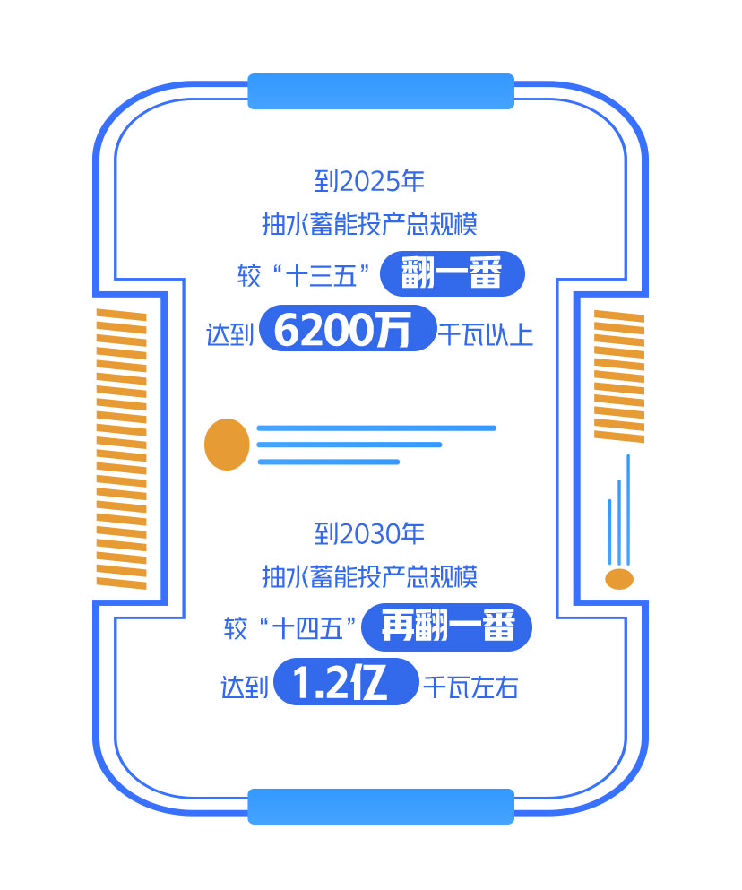 为推进抽水蓄能快速发展,适应新型电力系统建设和大规模高比例新能源发展需要,国家能源局近日发布《抽水蓄能中长期发展规划(2021—2035年)》(以下简称《规划》)提出,按照能核尽核、能开尽开的原则,在规划重点实施项目库内核准建设抽水蓄能电站。到2025年,抽水蓄能投产总规模较“十三五”翻一番,达到6200万千瓦以上;到2030年,抽水蓄能投产总规模较“十四五”再翻一番,达到1.2亿千瓦左右。