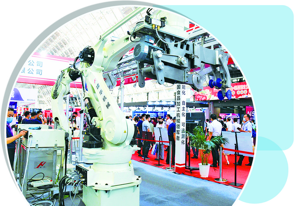 参展商在第十九届中国国际肉类工业展览会上演示屠宰机器人。本次展会集中展示生鲜肉品、屠宰装备、加工设备、包装设备、包装物料、冷链物流装备、食品配料及生产加工配套设施设备等。