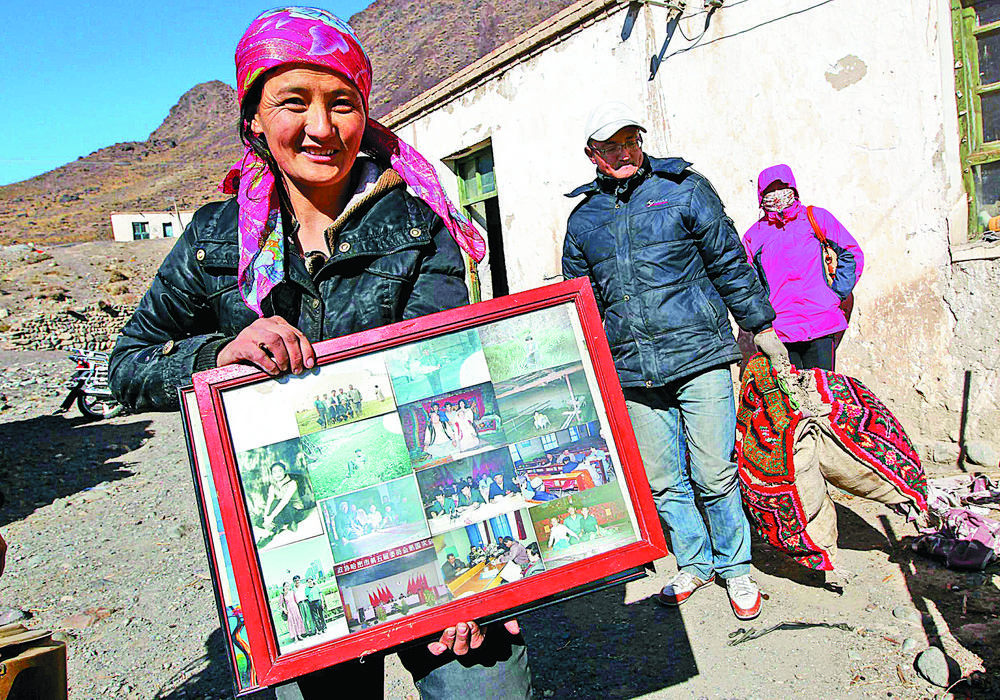 搬出大山住新居(组图之一) 作者 蔡增乐 2012年10月15日,新疆哈密市柳树沟乡快乐克村,牧民古丽巴哈尔·可依沙一家收拾家当,准备搬入新居。