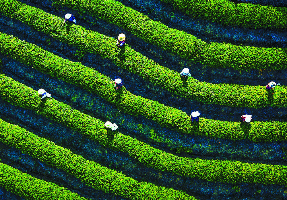 茶园音符 作者 苏朝阳 2019年4月9日,福建漳州市南靖县书洋镇茶园,采茶女在采茶。