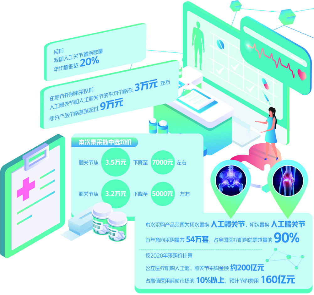 近日,国家医保局组织开展人工关节集中带量采购,产生拟中选结果。本次集采拟中选髋关节平均价格从3.5万元下降至7000元左右,膝关节平均价格从3.2万元下降至5000元左右,平均降价82%。人工关节集采是继冠脉支架集采后,国家治理高值医用耗材价格虚高、流通乱象的又一次重拳出击。人工关节降价,将大幅度减轻患者负担,提高其生活质量。集采为何能有如此大幅度降价?老百姓何时可以用上降价后的人工关节?记者就相关问题采访了专家。