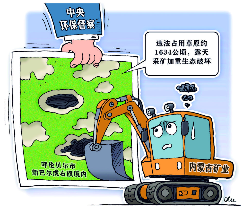 近日,中央第七生态环境保护督察组督察发现,内蒙古矿业公司违法侵占约1634公顷草原,排土场、尾矿库范围不断增加。通过卫星从空中俯瞰,大片白色的裸露土地,犹如草原绿色皮肤上的伤疤,当地草原生态遭到严重破坏。露天采矿不是一锤子买卖,不能采完即走。有关企业在开采过程中须牢固树立“绿色开采”理念,边开采边修复,边生产边治理,不能只顾一己私利,淡漠法律,忽视生态保护。有关部门应严厉查处此类不法行为,用法律手段震慑企业合法经营,切实守护好草原生态。(时 锋)
