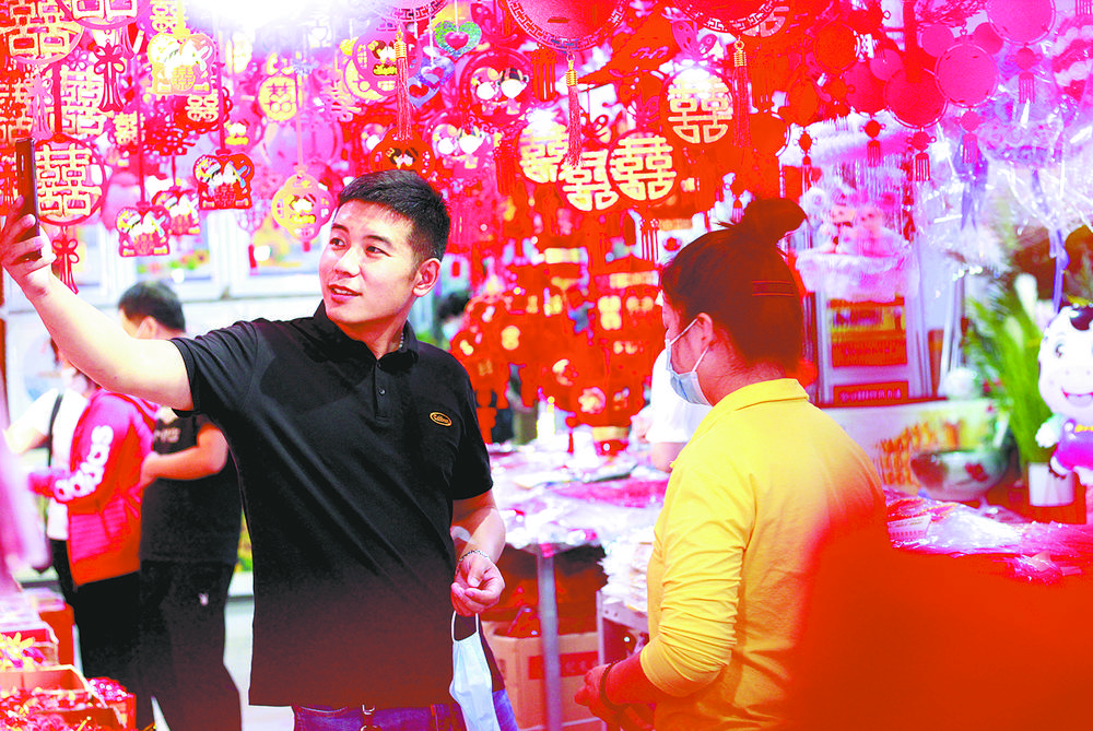 9月20日,河北保定亨佰丽小商品批发城,顾客在选购装饰用品。中秋小长假,当地节日消费市场红红火火,线上线下供需两旺。田艳军摄(中经视觉)