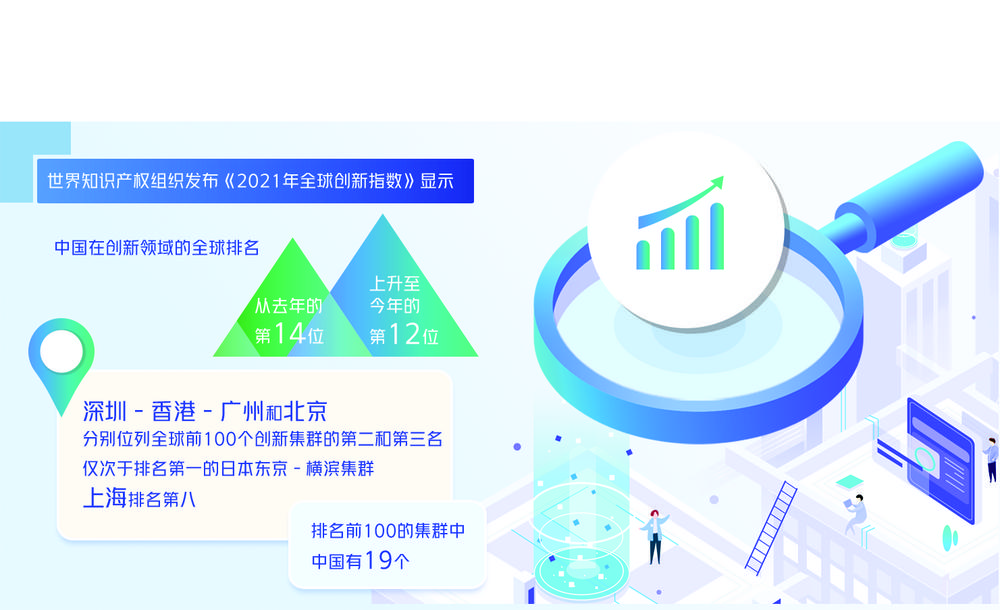 本报日内瓦讯(记者杨海泉)9月20日,世界知识产权组织(WIPO)发布《2021年全球创新指数》显示,中国在全球创新指数排名上持续多年保持稳定进步态势,排名从去年的第14位上升至今年的第12位。