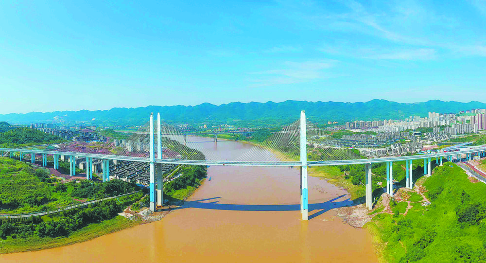 九月二十六日拍摄的蔡家嘉陵江大桥。当日,重庆市水土新城大桥、蔡家嘉陵江大桥、礼嘉嘉陵江大桥、土主中梁山隧道全部建成完工。“三桥一隧”通车后,将实现西部(重庆)科学城至两江新区快速通达。秦廷富摄(中经视觉)