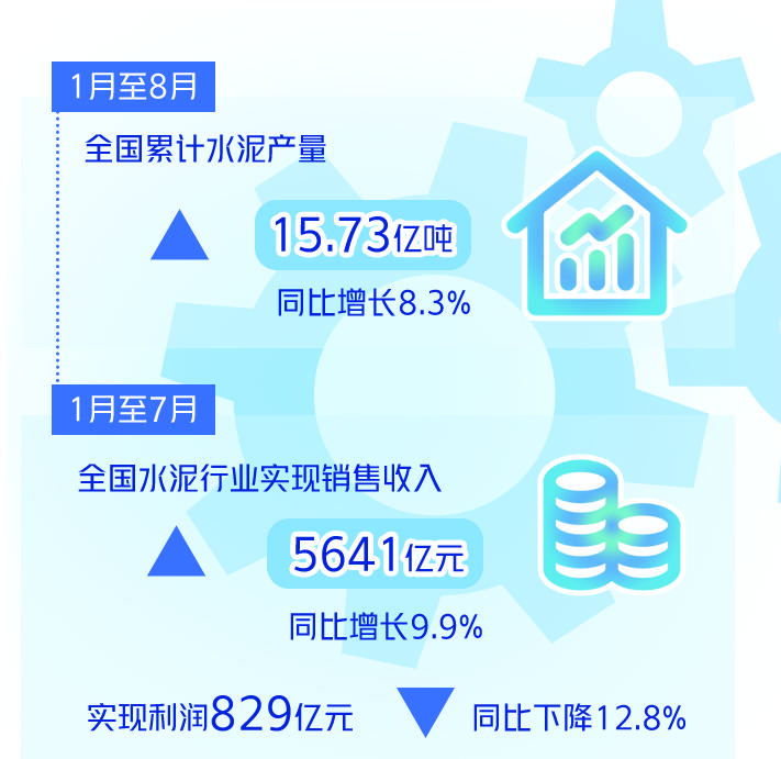 从行业整体情况来看,三季度水泥需求和利润从高位增长逐渐回落至正常水平,降幅逐渐收窄。数据显示,今年1月至8月,全国累计水泥产量15.73亿吨,同比增长8.3%;1月至7月,全国水泥行业实现销售收入5641亿元,同比增长9.9%,实现利润829亿元,同比下降12.8%。
