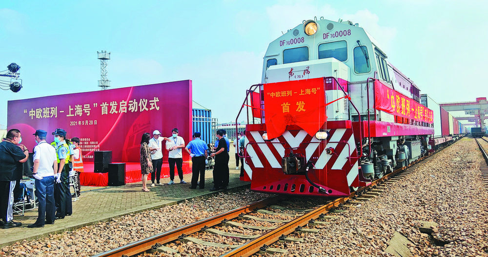 9月28日,“中欧班列—上海号”首发启动仪式在上海市铁路闵行货运站举行。上海开通中欧班列是贯彻落实国家战略、服务构建新发展格局的重要举措,对进一步提升上海国际贸易中心能级、强化上海全球资源配置能力和开放枢纽门户功能具有重要意义。本报记者 李 景摄