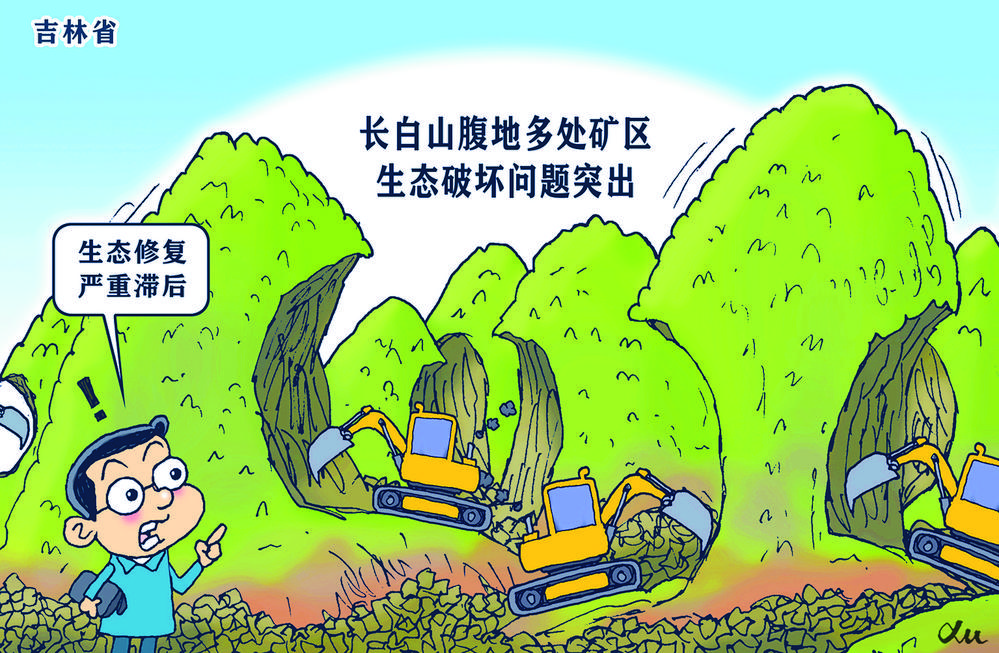 绿水青山就是金山银山,然而部分区域仍存在露天矿坑、废石堆场破坏生态环境的情况。近日,中央第一生态环境保护督察组督察吉林省发现,地处长白山腹地的白山市对矿山开采管控不力,某板石矿业公司5个矿区生态破坏问题突出,生态修复严重滞后。板石矿业生态破坏问题久治不愈,反映出当地有关部门监管工作不严不实,责任落实不到位,生态修复流于形式等问题。对此,除了要依法依规追究有关责任,相关部门和地方还要高质量编制矿山环境修复治理方案,加快修复进程,及时排除安全隐患,让满目疮痍的山体重披绿装。(时 锋)