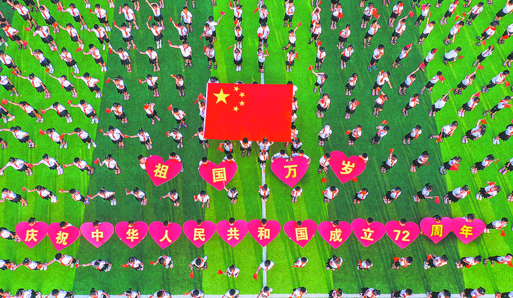 9月29日,江西樟树市清江小学举行“童心向党 歌唱祖国”活动。连日来,樟树市举办丰富多彩的文体活动,共同庆祝新中国72岁生日。陈 晗摄(中经视觉)