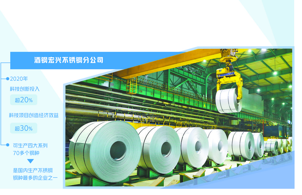 酒钢宏兴不锈钢分公司坚持科技创新,2020年的科技创新投入超20%,科技项目创造经济效益超30%。