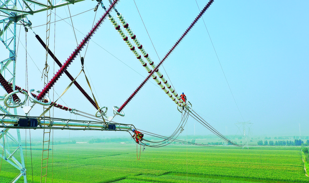 10月4日,国家电网属地化巡检人员对近日竣工的银东直流输电线路山东夏津1911号直线塔改耐张工程进行特巡作业。±660千伏银东直流输电工程是宁夏电力外送山东重要通道,是国家电网“西电东送”重点工程,目前工程已运行逾10年,累计输送电量超过3000亿千瓦时。随着工程进入第二个10年运营,国网开展大规模综合检修,全面完成对直流设备的“大体检”以及部分核心设备的整体更换,保障电力可靠供应。李海涛摄(中经视觉)