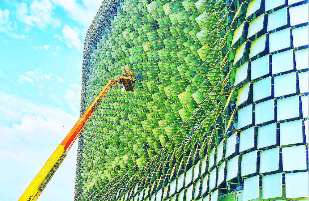 连日来,中建三局总承包公司的建筑工人在河南省科技馆新馆进行最后的外立面安装测试工作。该馆正在进行布展,预计年底投入运营。董 森摄(中经视觉)