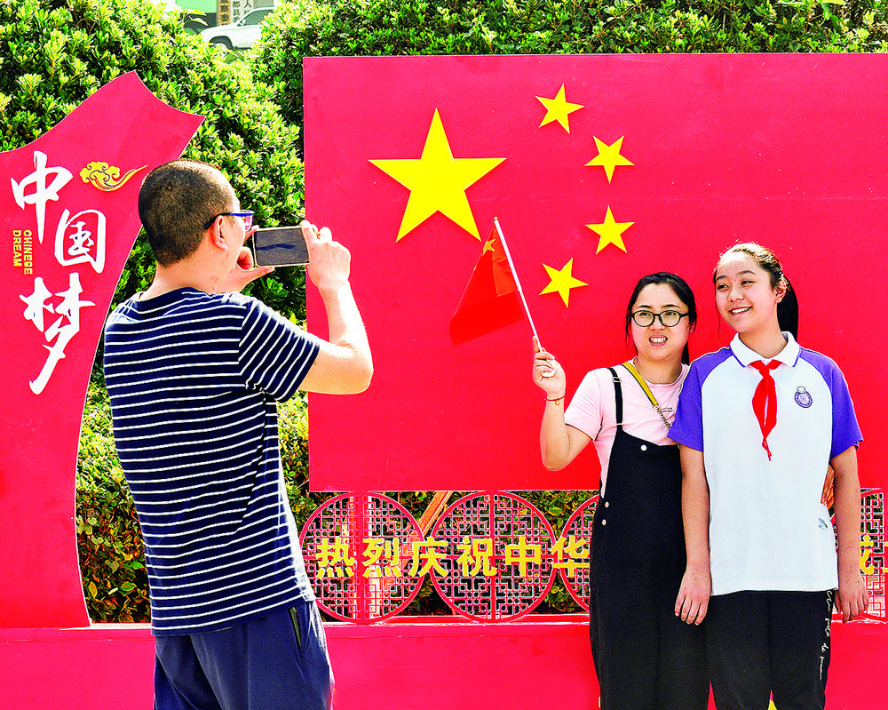 ②10月1日,游客在重庆市丰都县“我和国旗合个影”展台前合影留念。 熊 波摄(中经视觉)