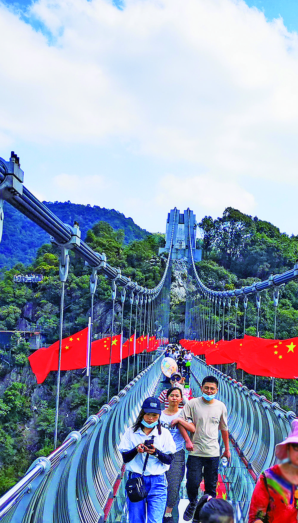 ⑤10月3日,浙江三门县横渡镇岩下村玻璃桥上游人如织。 林利军摄(中经视觉)