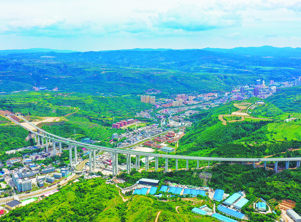 国庆假期,陕西省合(阳)铜(川)高速公路施工现场,中铁二十局建设者坚守岗位,全力保障合铜高速公路10月底顺利通车。合铜高速公路全长129.65公里,是陕西省首个交通基础设施PPP项目。图为合铜高速公路漆水河特大桥。