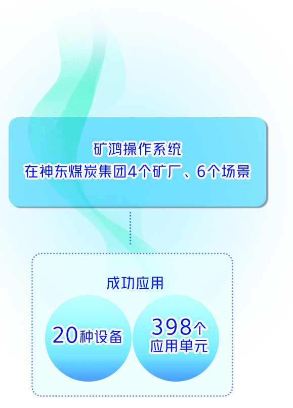 矿鸿操作系统包括各种传感器、矿灯、控制器之间互联互通,还能和手机、穿戴设备互联,从而实时感知周边环境,实现更高精度的人员定位,同时对井下人员健康实时监测,提升井下人员作业安全,最终虚拟成一个超级终端,让下一代煤矿工人穿着西服、打着领带坐在办公室里挖煤。矿鸿操作系统是国家能源集团和华为联合发布的。