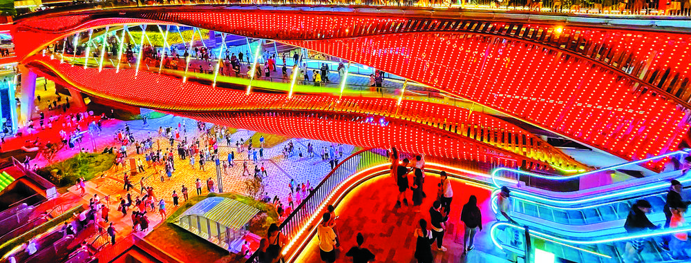 ▼10月6日,游客在位于上海浦东新区的前滩太古里观光游览。假期中,不少新景点成为人们的“打卡地”。 张 龙摄(中经视觉)