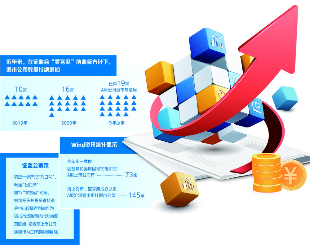 推进资本市场退市制度改革一直受到党中央、国务院的重视。“十四五”规划和2035年远景目标纲要明确提出,全面实行股票发行注册制,建立常态化退市机制,提高上市公司质量。国务院去年10月印发的《关于进一步提高上市公司质量的意见》明确提出,严格退市监管,拓宽多元化退出渠道。《健全上市公司退市机制实施方案》去年11月经中央深改委第十六次会议审议通过。为落实中央的决议,2020年12月31日,在证监会的统筹指导下,沪深交易所正式发布《股票上市规则》等退市规则,退市制度改革取得实质性进展。