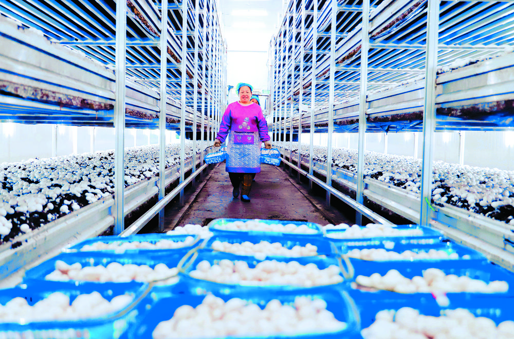 日前,江西新余市渝水区南安乡丰洲村蘑坊菌业种植基地内,工人正在采摘双孢蘑菇。近年来,新余市渝水区采取“种植基地+合作社+农户”的模式,大力发展食用菌种植,促进农业增效、农民增收,助力乡村振兴。廖海金摄(中经视觉)
