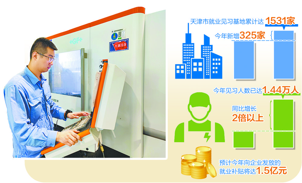 据统计,天津市今年新增就业见习基地325家,累计达到1531家。目前,天津市今年见习人数已经达到1.44万人,同比增长2倍以上。