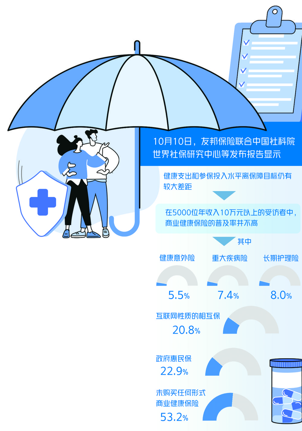 中国社会科学院保险与经济发展研究中心副主任王向楠在接受经济日报记者采访时表示,全面建成小康社会后,居民对身体健康和医疗服务的需求进一步增强,而在我国医疗卫生总费用中,居民自付部分保持在高位,所以居民对提升医保水平的需求更迫切,商业保险可基于医保推出更高水平的保障。与此同时,随着人口老龄化深入,各类带病人群增多,他们对养老和医疗在保障资金、物品和服务上均有需求,这为保险业发展综合性健康险产品创造了空间。